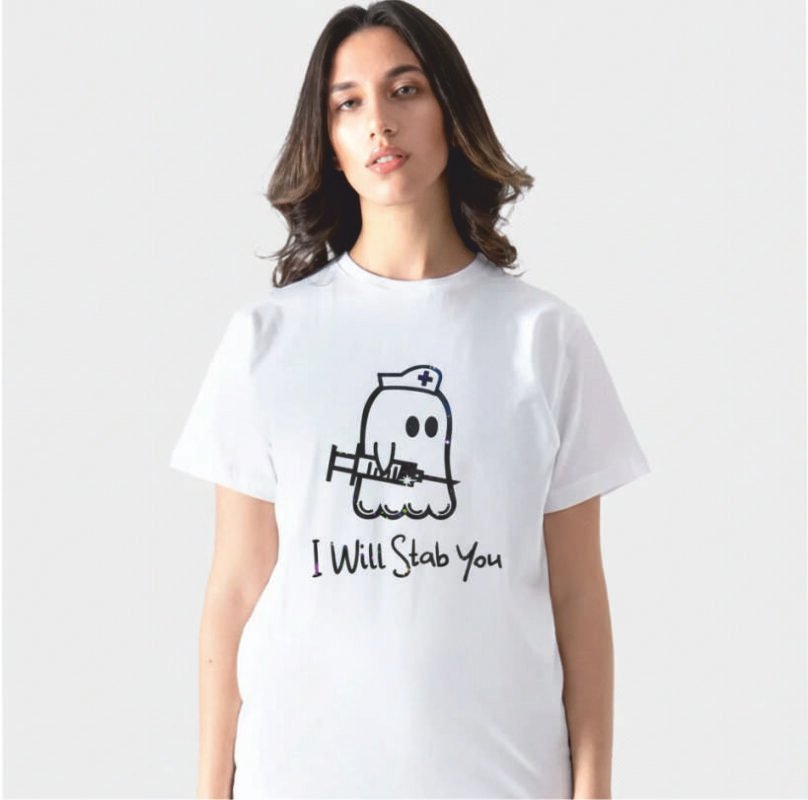 “Seni Şişlerim!” İğne Tutan Sevimli Hayalet Figürlü Hemşire Tişört