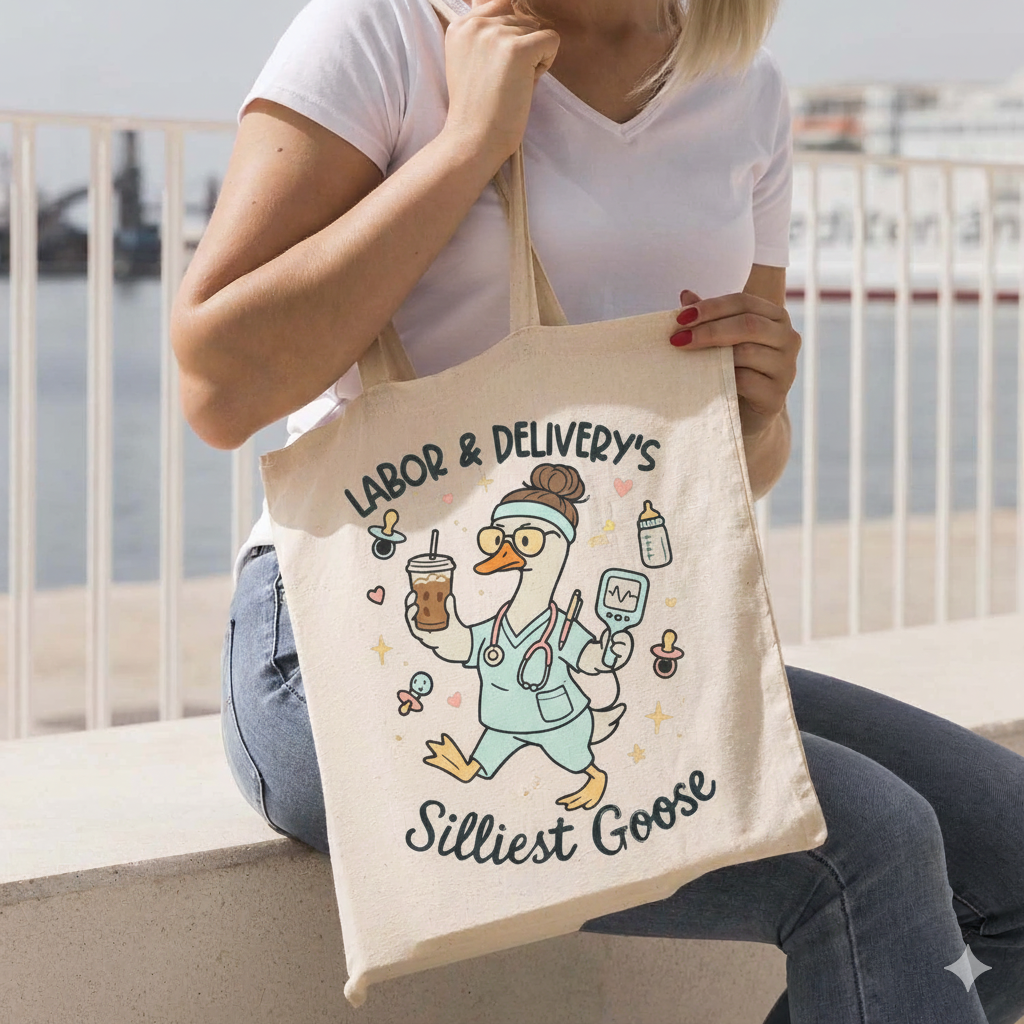 Doğumhane Hemşirelerine Özel Tasarım Baskılı Kanvas Bez Çanta