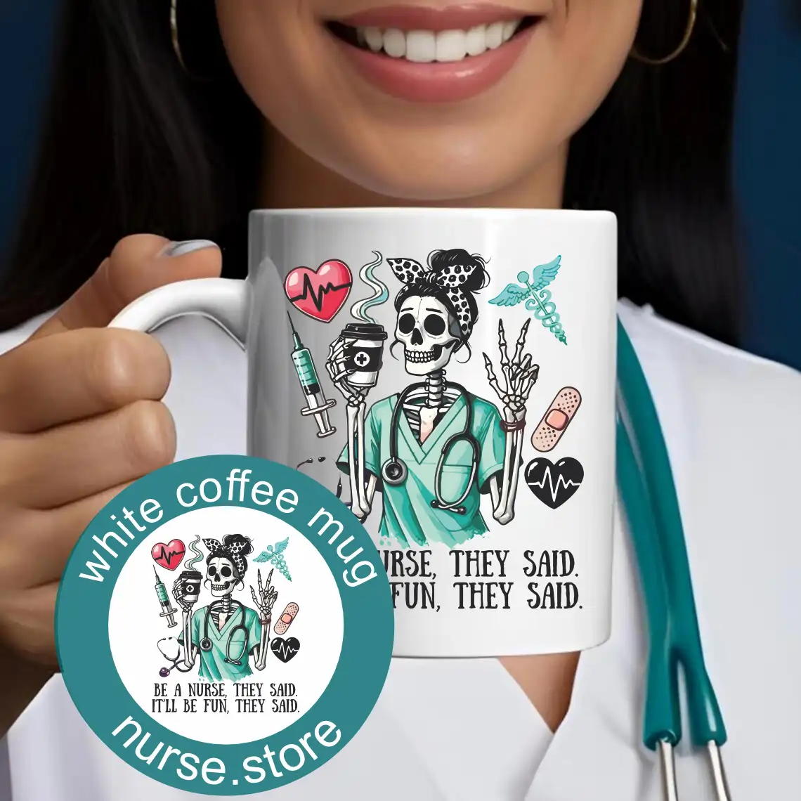 Kahve Müptelası Hemşirelere Özel İskelet Figürlü “It’ll Be Fun” Kupa Bardak
