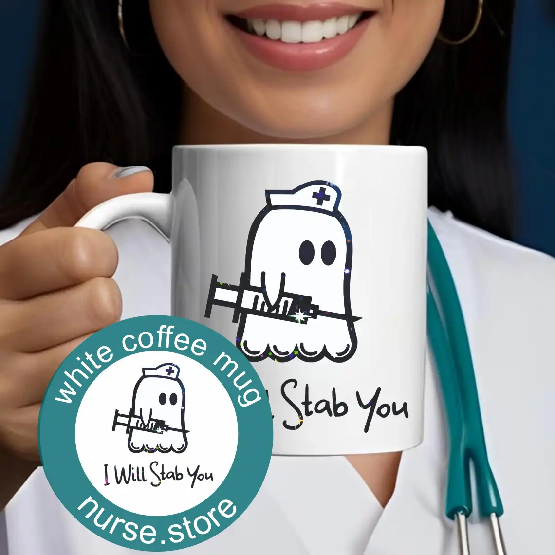 “Seni Şişlerim!” İğne Tutan Sevimli Hayalet Figürlü Hemşire Kupa Bardak